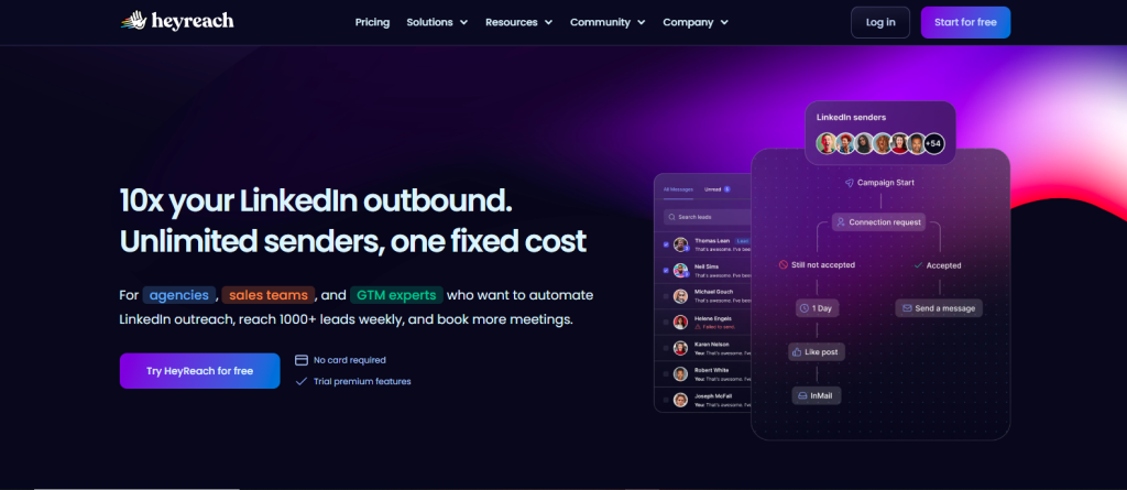HeyReach is a LinkedIn outreach automation tool that helps users streamline their LinkedIn and email outreach efforts through personalized and automated messaging campaigns. It’s designed for lead generation agencies and sales teams.